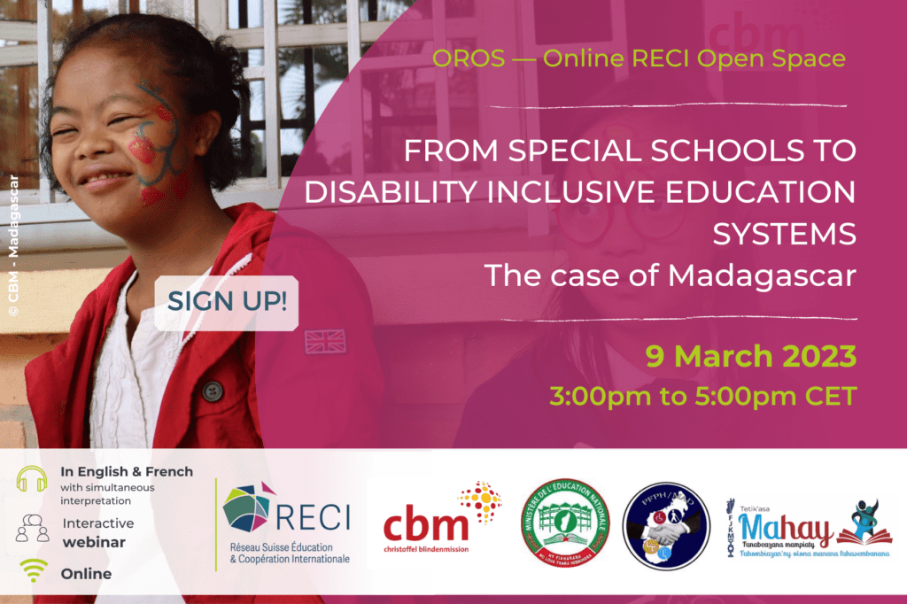 But what does such an inclusive system look like in practice? And how can transformative change take place in a segregated education system, where special schools and mainstream schools have existed in parallel over the past decades? The Madagascar case describes the journey of advocacy, policy change, curriculum revision, participation and stakeholder engagement. It also highlights challenges such as resource allocation and redistribution, teacher training and child-centred teaching in overcrowded classrooms. Colleagues from CBM Global’s Madagascar country office, organisations of persons with disabilities, the partner organisation FJKM were be happy to discuss with you in this webinar, OROS (Online RECI Open Space). Participants were be invited to discuss this topic and to contribute with their own experience and projects.