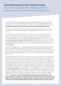 Title: 2025, Joint Statement to the Federal Council Appeal to reconsider the withdrawal from basic education in international cooperation