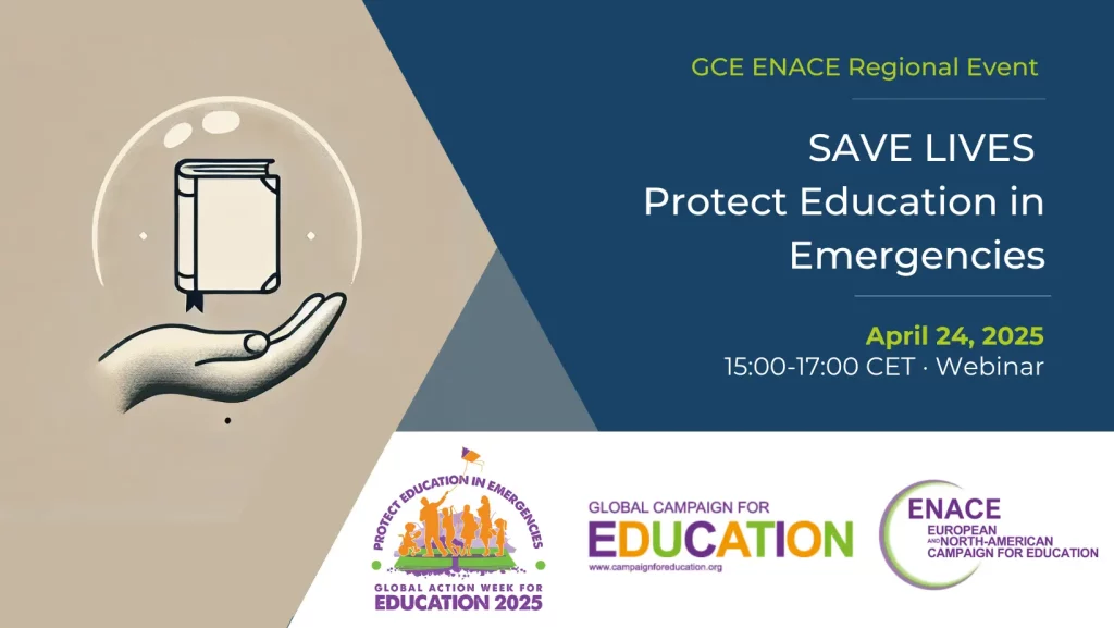 This webinar, launched by ENACE (Europe and North America Campaign for Education) is organised as part of the Global Action Week for Education (GAWE) by the GCE (Global Campaign for Education). It aims to highlight the urgency of ensuring Education in Emergencies (EiE).